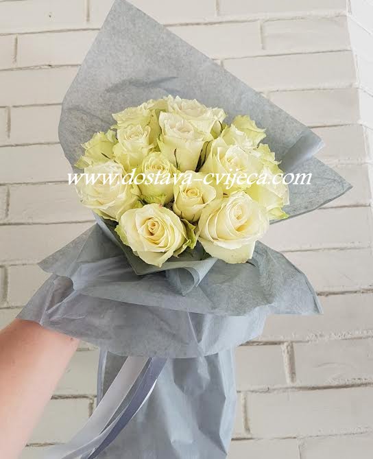 Osnovni buket složen je od 8 bijelih ruža,